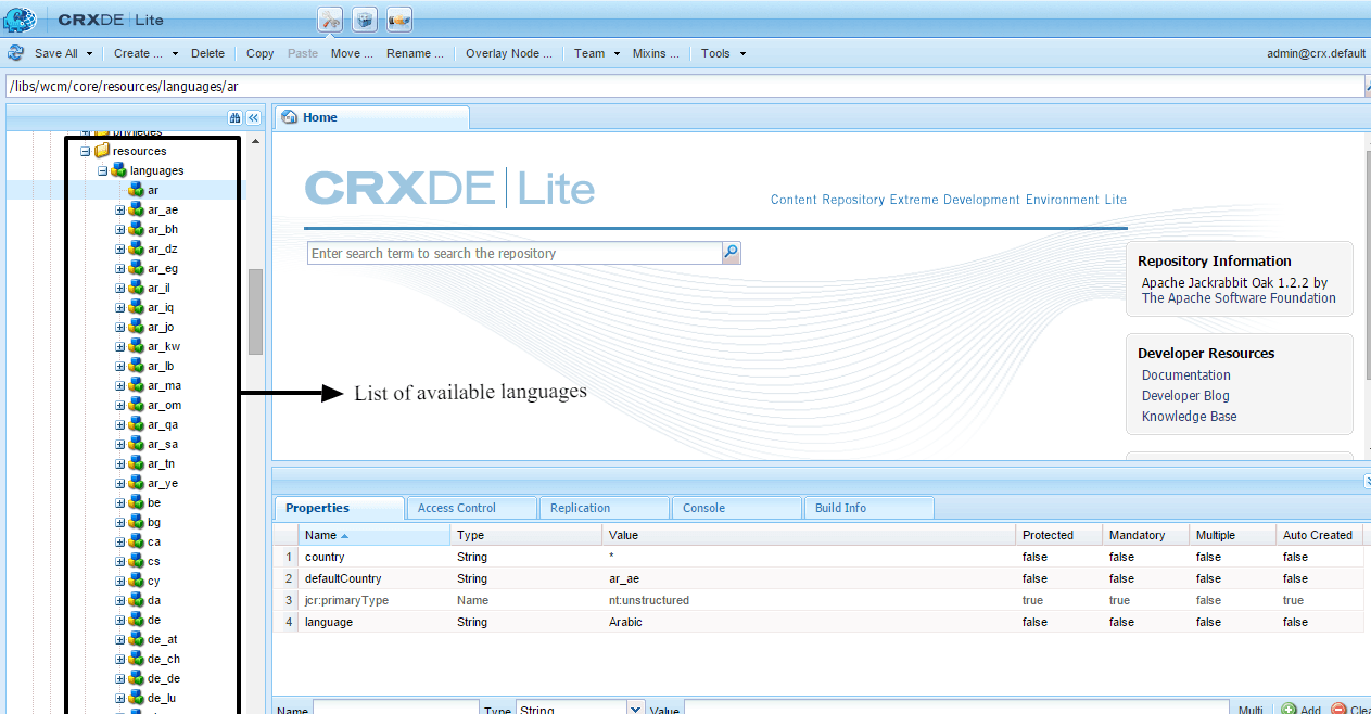 list of available languages in aem cq5 tutorials