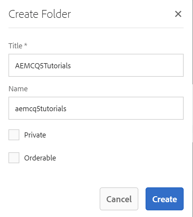 - Under files create a folder, for this demo i am creating a folder by name AEMCQ5Tutorials.